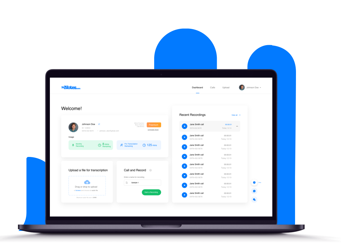Upload your files directly to your account or start recording calls right away. Try call recording & RoboTranscribe for free. ProTranscribe starts at $0.75/min.